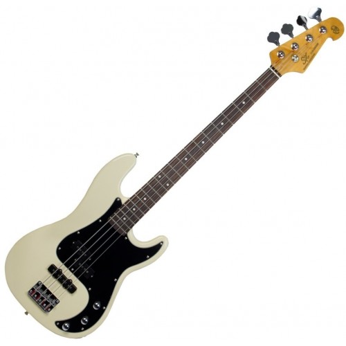 égerfa test, csavarozott juhar nyak, rózsafa fogólap, 20 Jumbo érintő, menzúra: 34" (864 mm), króm szerelékek, Vintage stílusú húrláb,2 hangszedő (1x precison, 1x jazzbass), 2 hangerő és 1 hangszínszabályzó, Vintage White kivitel, tartozék tok