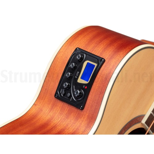 A Soundsation SAB10 NTS 4 húros akusztikus basszusgitár kivágott kialakítással kiválóan ötvözi a játszhatóságot és a sokoldalúságot. Beépített hangolóval ellátott előerősítővel felszerelve, amely precíz hangvezérlést biztosít mind akusztikus, mind erősített módban. A lucfenyő tető kiváló rezonanciát biztosít, meleg, mély hangszíneket adva, amelyek ideálisak bármilyen zenei műfajhoz, míg a rózsafa fogólap és húrláb díszíti a hangszert.